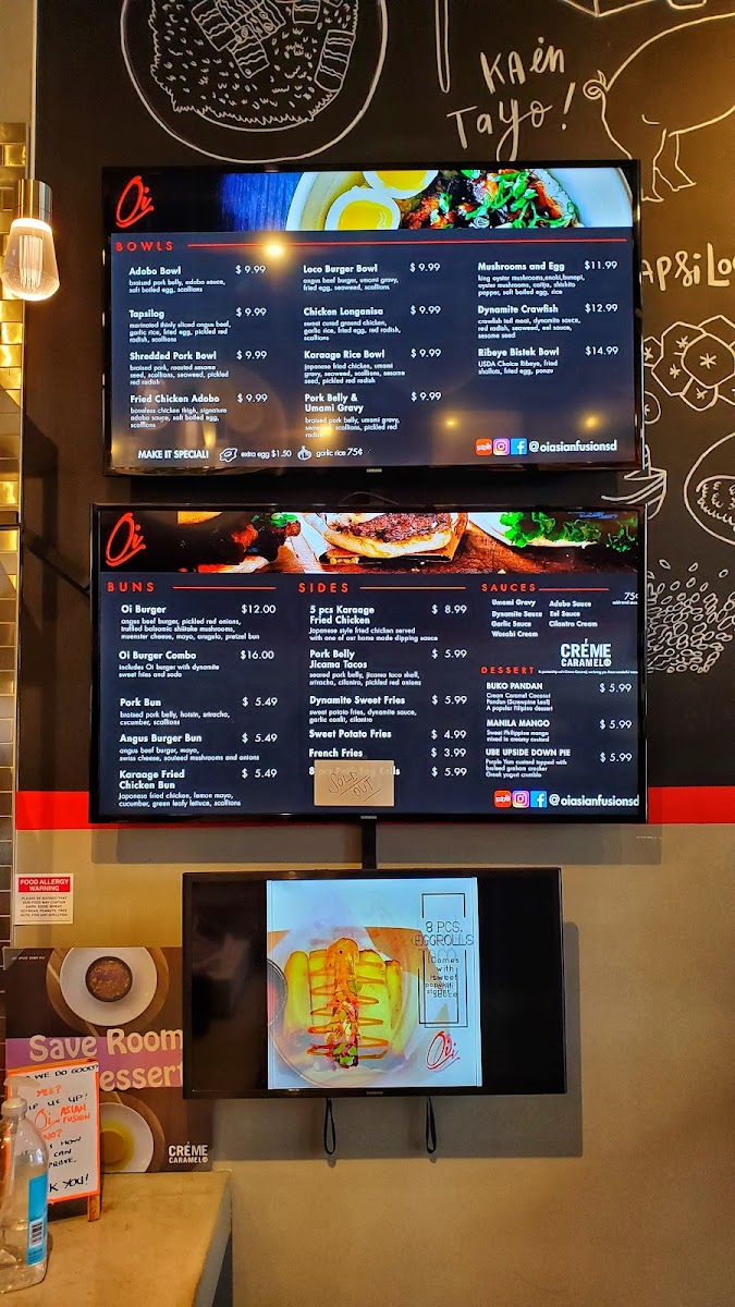 Oi Burger, dynamite sweet fries, coke, sprite or Diet Coke only